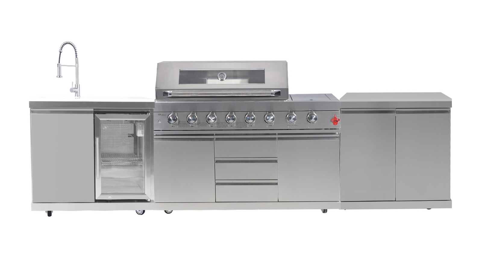Vrhunska samostoječa zunanja kuhinja! Miami je elegantna zunanja kuhinja v trendovskem INOX-u in vključuje vse, kar bi lahko kdaj potrebovali.